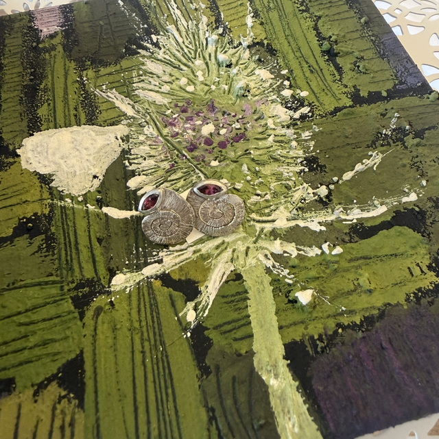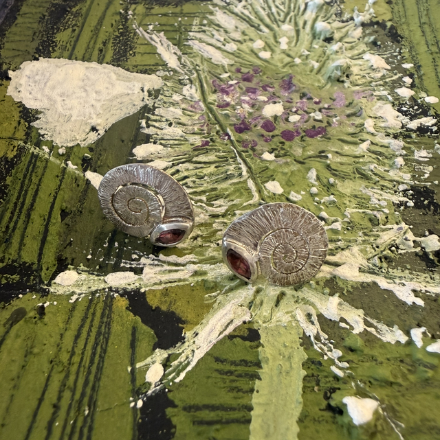 1 Paar Ohrstecker Silber mit Almandin-Navettes „Dipsacus fullonum“