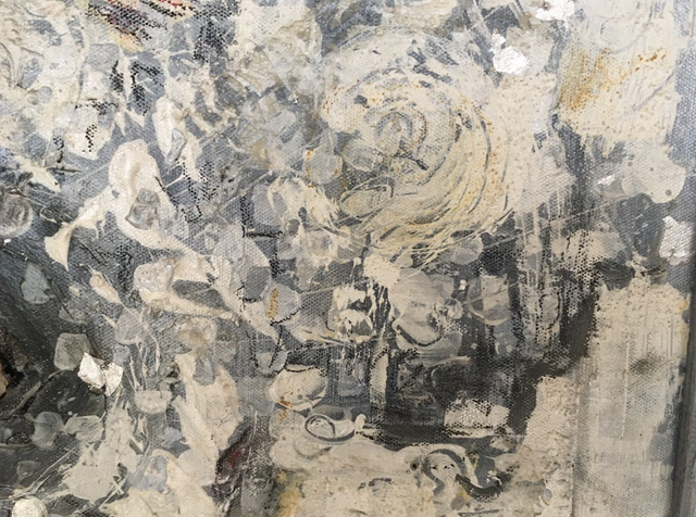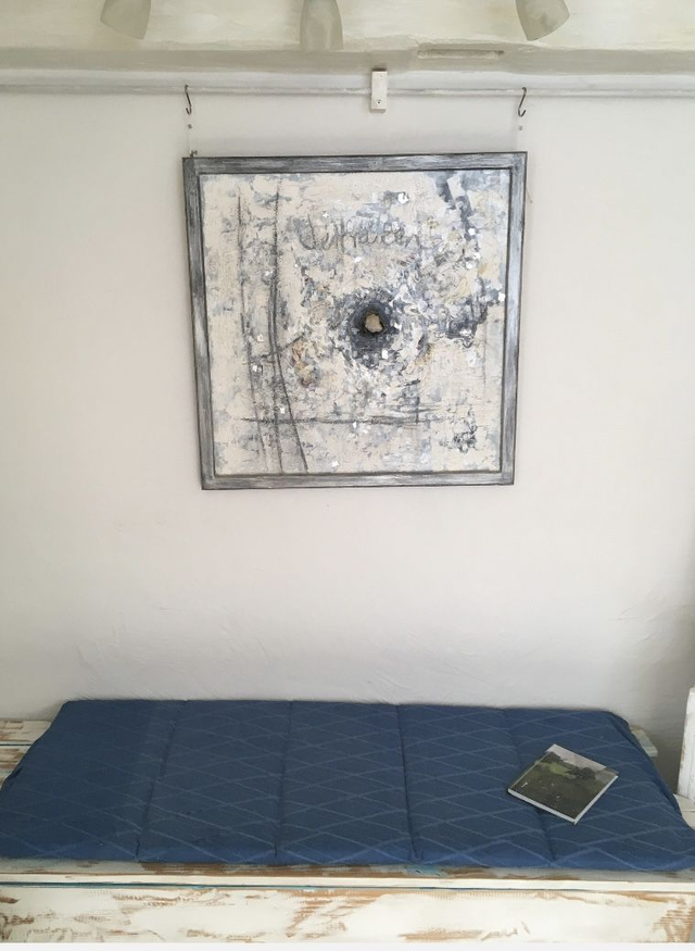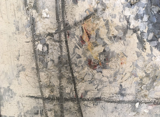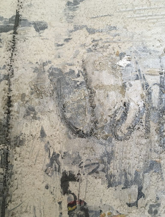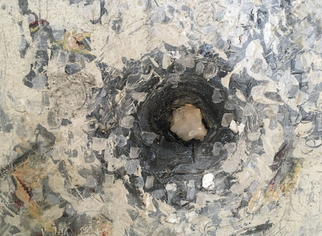 Diese Acrylcollage mit ihrer schönen Bergkristall Stufe im Zentrum wurde mit dem Mantra „ Vertraue dir selbst, so wirst du deine innere Ruhe und deinen inneren Frieden finden.“ Ruhige meditative Grautöne mit silbernen Schlagmetallstücken die für die Lichternergie stehen wirken energetischeren und entspannend zugleich.
