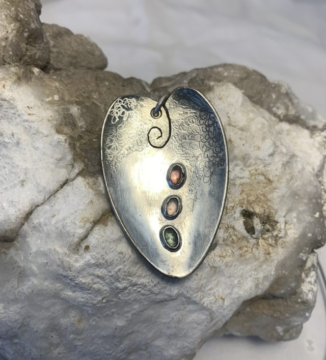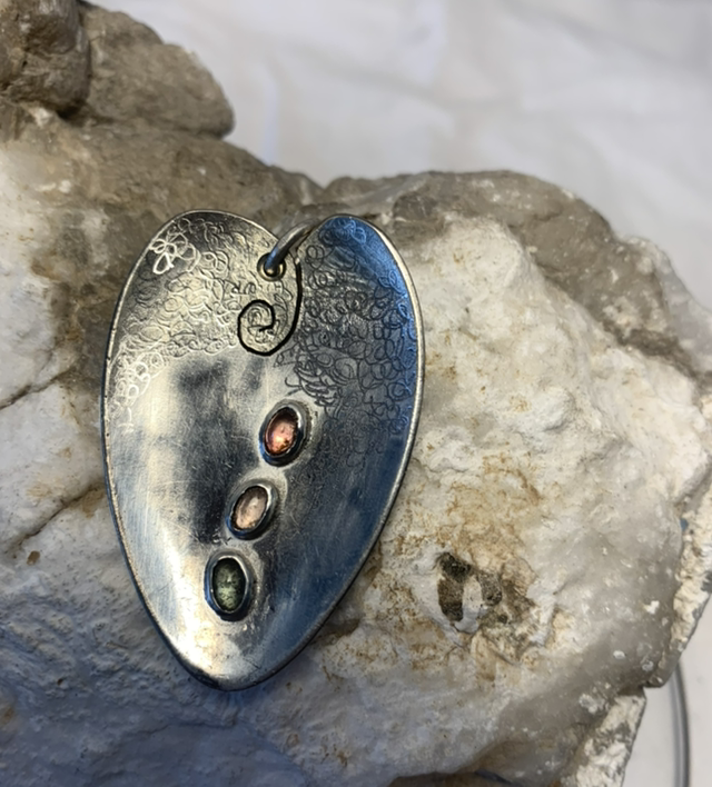 Anhänger aus versilberten Kaffeelöffeln „Skje“ mit Turmalinen