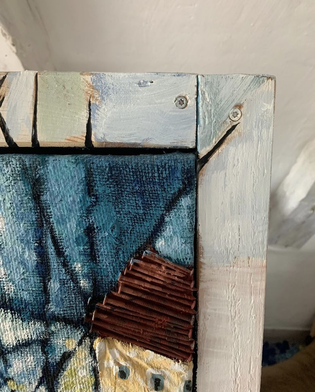 Das Bild ist 64x64cm mit Palettenholzrahmen und ist 2022 entstanden.