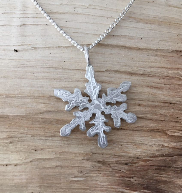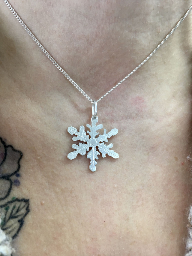 Eine zarte Schneeflocke aus Silber (ca.2,5cm) die sich ideal an einer zarten Silberhalskette tragen lässt. Der Anhänger ist ein ideales Wichtelgeschenk, Weihnachtsgeschenk oder einfach so- ein Hingucker für alle Schnee- und Winterbegeisterten.